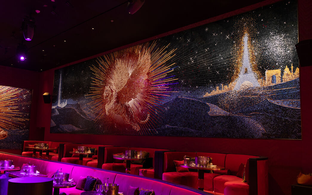 The physical space, curated by Mary Bjorg, serves as an architectural narrative highlighted by five primary mosaics designed by Dimitri Rybaltchenko and a striking, bespoke SICIS tiger mosaic that depicts a journey from Paris to the Burj Khalifa. Adding to this atmosphere of exclusivity, Paris Paradis is the only venue in Dubai to serve Laurent-Perrier Héritage Champagne, further cementing its status as a premier destination for the French art of celebration.