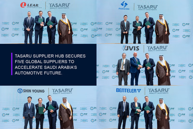 Announced during the 4th edition of the PIF Private Sector Forum, TASARU Supplier Hub is working with five global Tier-1 critical suppliers to localize manufacturing operations in Saudi Arabia. This is a major milestone in developing the national automotive ecosystem and reinforce the Kingdom’s position as a competitive industrial hub.